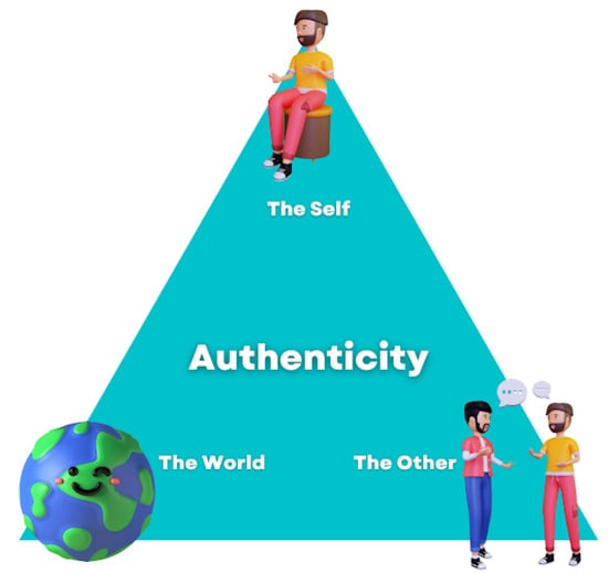 The triangle of authenticity with its three dimensions. This image was created by us with Canva.