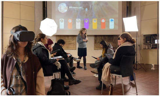 - Pescarin, S.; Cerato, I.; D’Annibale, E.; Fanini, B.; Ferdani, D.; Manganelli Del Fà, R.; Marasco, A.; Massidda, M.; Palombini, A.; Ronchi, D. Hybrid XR Collaborative and Guided Experiences in Cultural Heritage: Brancacci POV Prototype; The Eurographics Association: Munich, Germany, 2023; Artwork Size; 5p. [Google Scholar] [CrossRef]