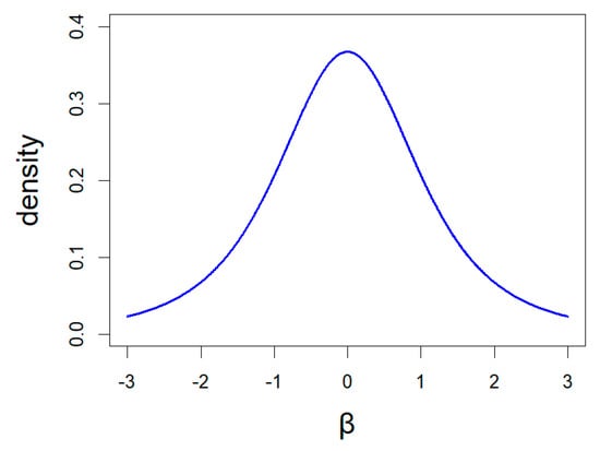 Density of prior distributions for the fixed effects: β~t (3, 0, 2.5).