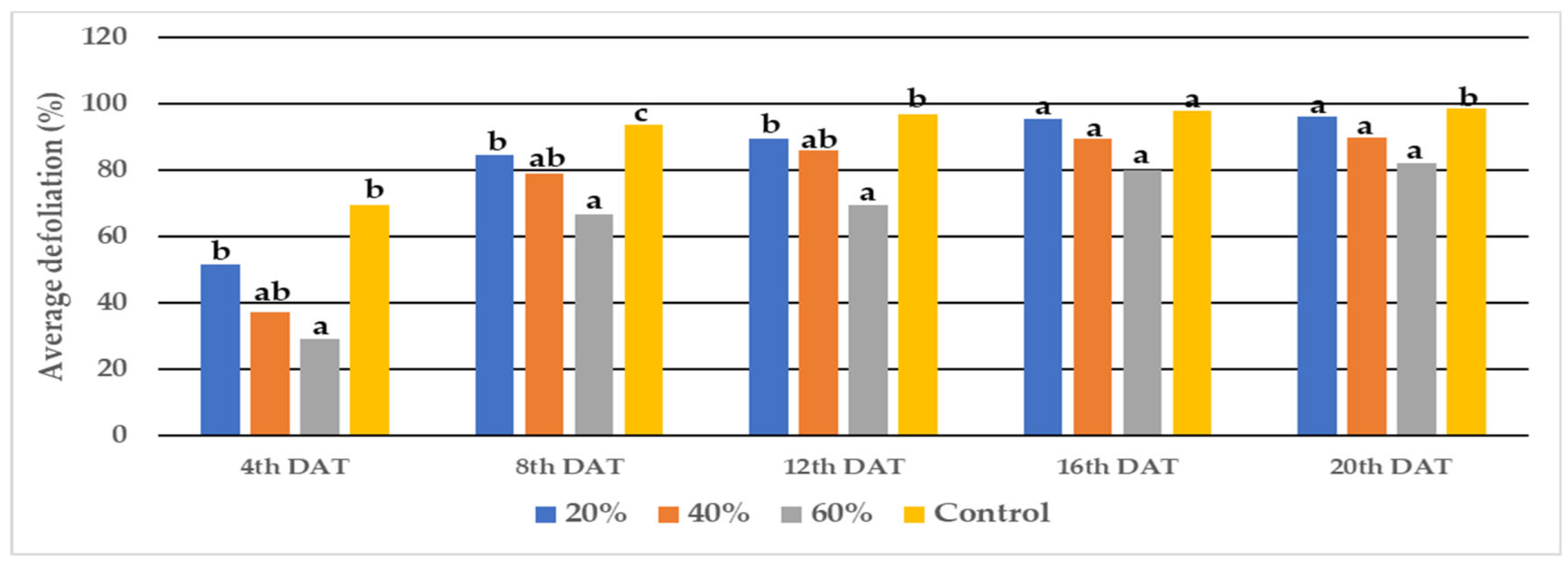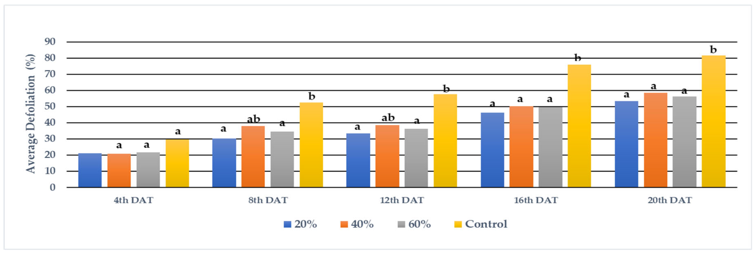 2.4. Cotton Cultivars and Defoliant Chemicals
