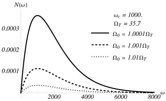 The spectral density of the virtual photons, , is plotted in Figure 1 for three different choices of the frequency . These are expressed in terms of the threshold frequency