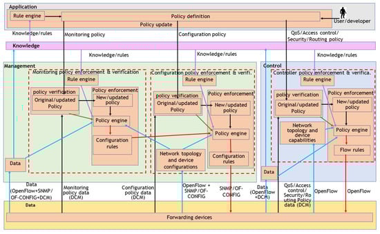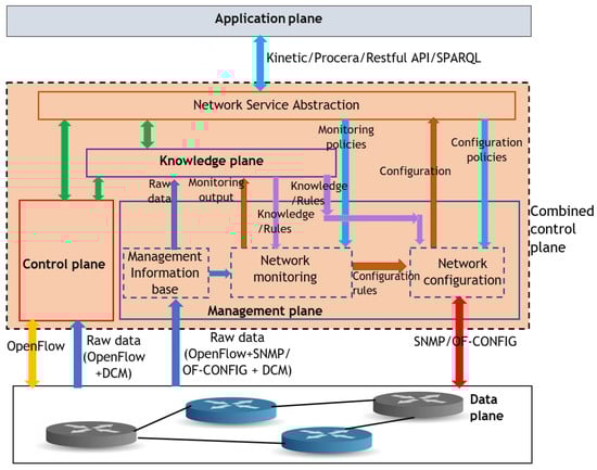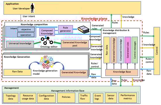 The architecture of the knowledge plane containing the three knowledge sub-planes and its communication with the network [] are graphically illustrated in Figure 3.