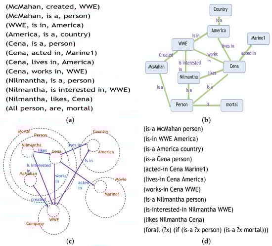 The generated knowledge can be modeled using the Resource Description Framework (RDF) knowledge representation language. RDF represents knowledge as a set of triplets, which consist of a subject, predicate, and object. In RDF, subjects and objects are identified by Uniform Resource Identifiers (URIs), and predicates represent relationships between them. This structure makes RDF a flexible and extensible knowledge representation model that can represent diverse types of knowledge [].
