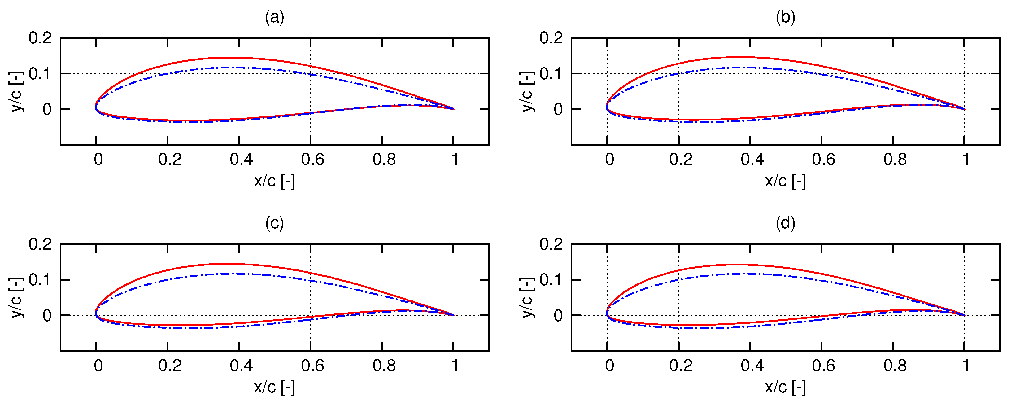 - Peigin, S.; Epstein, B. Robust optimization of 2d airfoils driven by full Navier–Stokes computations. Comput. Fluids 2004, 9, 1175–1200. [Google Scholar] [CrossRef]