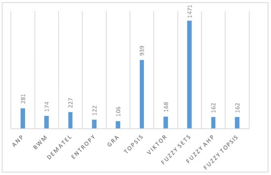 The entropy method is a method for weighting criteria based on their relative importance and uncertainty []. It has been used in 122 articles pertaining to the application of MCDM in sustainable engineering.