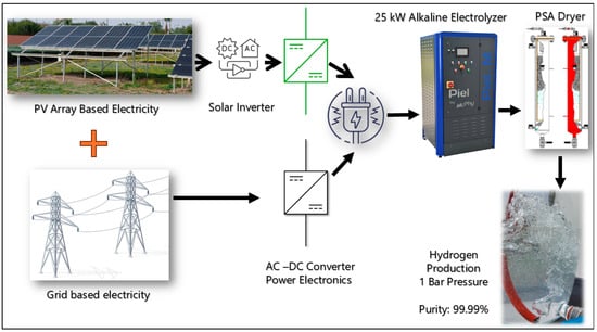 So far, we have discussed various integrated systems and related techno-economics associated with the production of green H2. Now, we will focus on recent progress in electrolyzer research and gaps behind their performance integration with both renewable and grid-based electrical power, which is followed by establishing the objectives of the current experimental and performance study of a 25 kW commercial alkaline electrolyzer integrated with a hybrid power supply from PV and the grid.