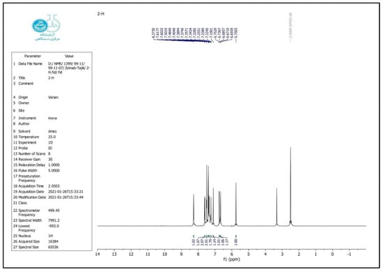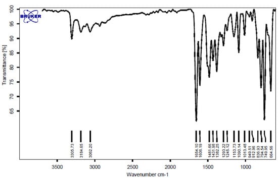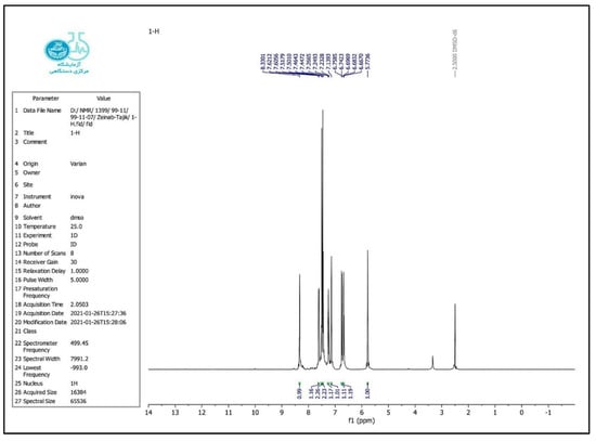 FT-IR (KBr, cm−1): 3305, 3184, 3062, 1654, 1606, 1431, 1090, 749 cm−1. 1H NMR (500 MHz, DMSO): δ H (ppm) = 5.77 (s, 1H, CH), 6.68 (t, 1H, Ar-H), 6.74 (d, 1H, Ar-H), 7.1 (s, 1H, NH), 7.24 (t, 1H, Ar-H), 7.45 (d, 1H, Ar-H), 7.50 (d, 1H, Ar-H), 7.61 (d, 1H, Ar-H), 8.27 (s, 1H, CONH) (Figure 3 and Figure 4).