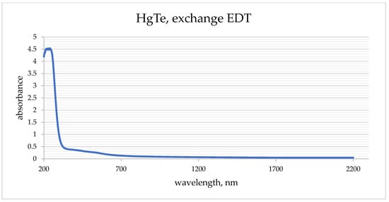 Colloidal quantum dots (CQDs) of mercury telluride have attracted a lot of attention in the last decade because of their unique properties []. Mercury telluride-based CQDs are promising candidates for use in various fields of engineering and science due to their incomparable combination of a large radius of the Boron exciton (30 nm) and the band gap (0 eV) for bulk material. This ensures the spectral rearrangement of the properties of the CQDs from the near to far IR range. On the basis of this material photodetectors, lasers and applications in telecommunication devices are being actively developed [,,].