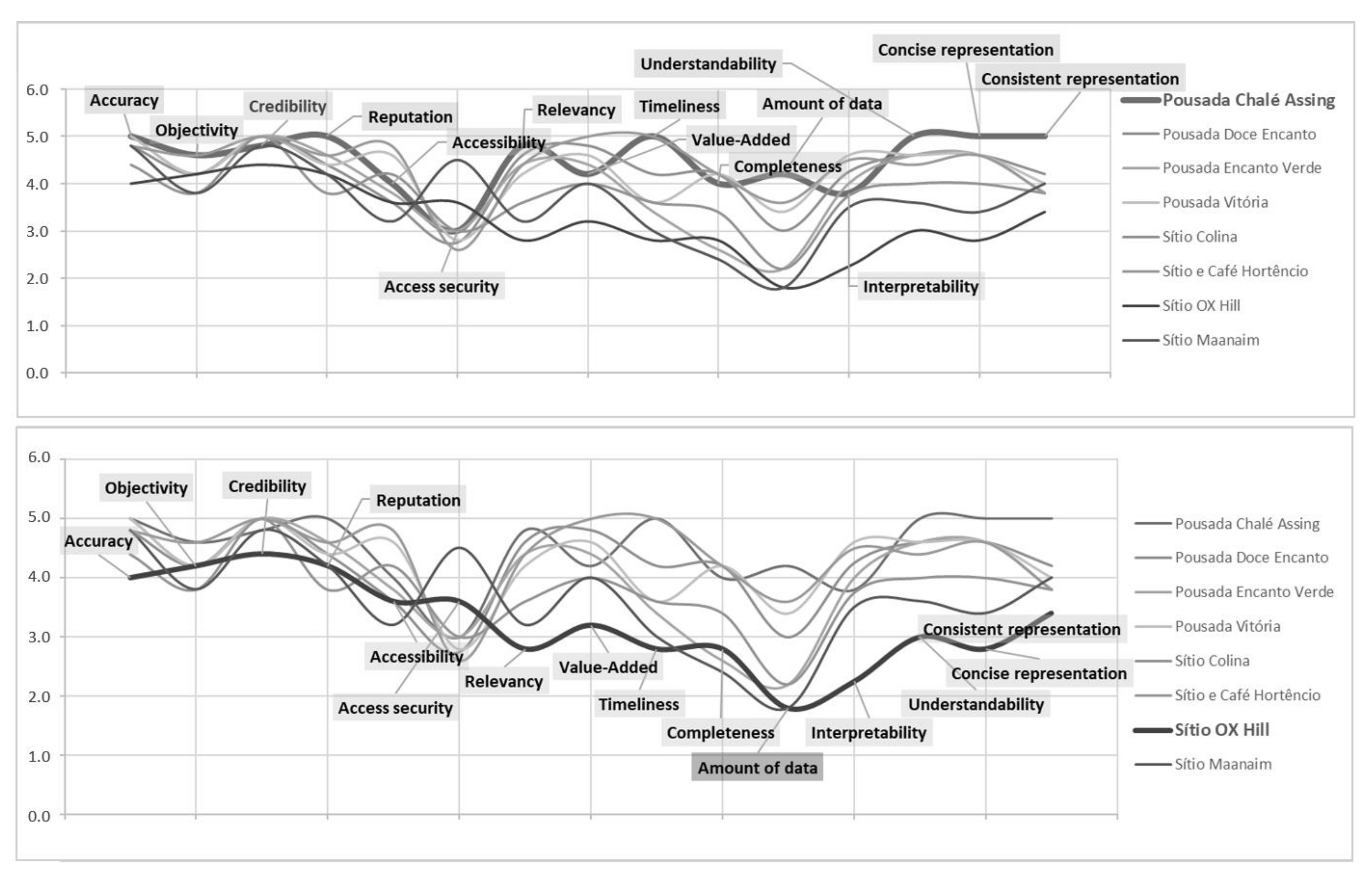 | Category | Dimensions | Pousada Chalé Assing | Pousada Doce Encanto | Pousada Ekosol | Pousada Encanto Verde | Pousada Vitória | Sítio Colina | Sítio e Café Hortêncio | Sítio OX Hill | Sítio Maanaim | Overall Average |