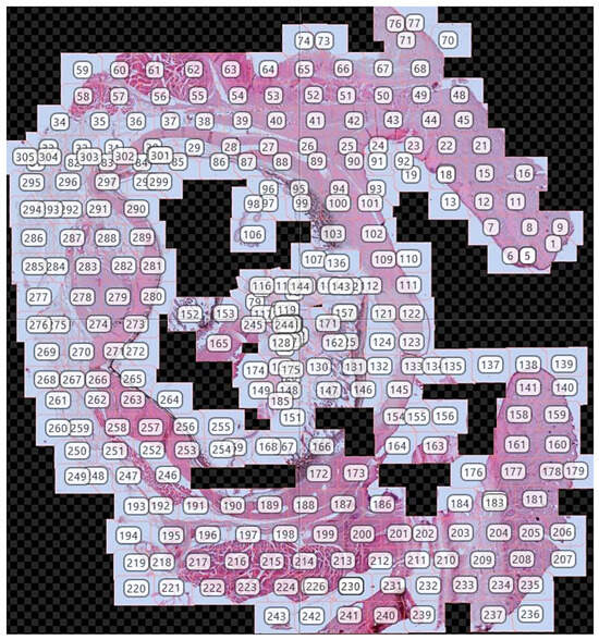 Automatic fusion program: PTGui—version 12.27—(Rotterdam, The Netherlands): This software allowed us to merge the photographs obtained with the photomicroscope using common references points (control points) shared across the individual images, obtaining a final mosaic of excellent quality of the entire sample (in variable number from 6 to 300 photos, depending on the sample) resulting in the final digital image that we will use (Figure 1).