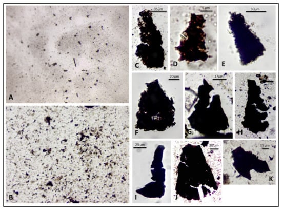 - Batten, D.J. Chapter 26A. Palynofacies and Paleoenvironmental Interpretation. In Palynology: Principles and Applications; Jansonius, J., McGregor, D.C., Eds.; American Association of Stratigraphic Palynologists Foundation: Houston, TX, USA, 1996; Volume 3, pp. 1011–1084. [Google Scholar]
