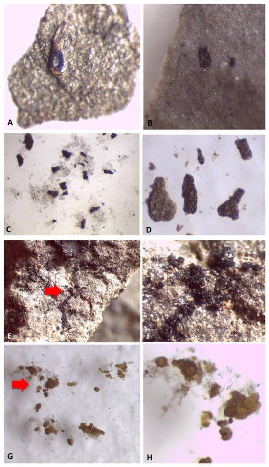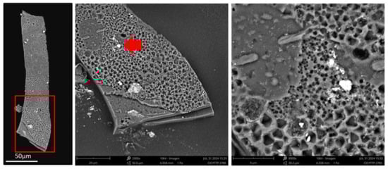 Afterward, certain palynomorphs were carefully placed onto stubs for photography using an SEM (Jenck Phenom ProX scanning electron microscope, Phenom-World BV, Eindhoven, The Netherlands). This type of microscope operates under a vacuum and does not need metallization (Figure 4G), according to []. Additionally, the microscope performed some elemental chemical analyses (EDS).