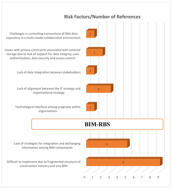 BIM-RBS: The analysis indicates [32] suggest that BIM holds promise for addressing AEC industry challenges, but the analysis reveals practical difficulties in BIM implementation due to the construction industry’s fragmented structure, inherently affecting BIM [28]. Notably, there’s a lack of strategies to integrate and exchange information among fragmented BIM components and roles [29], highlighting the need for research to evaluate and address this risk. Practitioners must recognize that immediate solutions for these challenges are elusive, given the constant evolution of BIM technology with new components, processes, and methods [30,34]. Furthermore, the technical challenges of integrating BIM models with other systems such as facilities management, project management and quantity surveying systems etc. indicate time constraint for organizations to properly internalize BIM tools into their work processes and practices. Nevertheless, the boundaries of the two-knowledge domain lack comprehensive research, leading to a shortage of reference materials for certain strategies. Further research was crucial to comprehend and tackle challenges within this category to avoid a shift of BIM systems into a disequilibrium state.