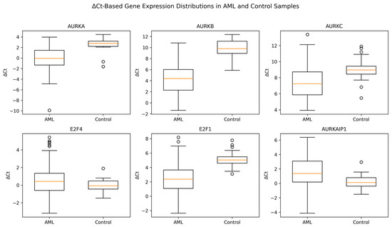 Acute myeloid leukemia (AML) is an aggressive hematologic malignancy characterized by impaired differentiation and accumulation of immature myeloid cells. Aurora kinases and their regulatory genes play key roles in mitotic progression and may contribute to leukemogenesis. This study aimed to evaluate the expression and promoter methylation status of AURKA, AURKB, and AURKC and their regulatory genes, AURKAIP1, E2F1, and E2F4 in AML. Peripheral blood samples from 83 AML patients and 28 age- and sex-matched healthy controls were analyzed using MIQE-compliant RT-qPCR for gene expression and MSRE-qPCR for promoter methylation. Diagnostic performance was assessed using receiver operating characteristic (ROC) curve analysis. Expression levels of AURKA, AURKB, AURKC, and E2F1 were significantly increased in AML patients (p < 0.001), whereas AURKAIP1 expression was significantly reduced (p = 0.001), and E2F4 showed no significant difference. Promoter methylation analysis revealed significantly increased AURKAIP1 methylation in AML (p < 0.001), decreased E2F4 methylation (p = 0.023), and no significant change in E2F1. ROC analysis demonstrated strong diagnostic performance, with AURKB showing the highest accuracy (AUC = 0.95), while a combined biomarker panel achieved an AUC of 0.96. Aurora kinase–related genes are dysregulated in AML and may serve as preliminary peripheral biomarker candidates. However, further validation in independent cohorts and more refined cellular models is required before clinical application.