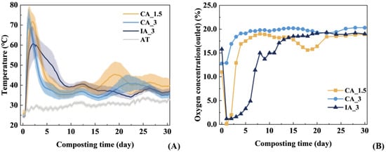 This study investigated the impacts of diverse aeration processes (continuous aeration vs. intermittent aeration) and aeration rates on the aerobic composting process. The key properties examined include temperature, oxygen dynamics, lignocellulose degradation, humification, and the functional potential of carbohydrate-active enzymes (CAZymes) based on