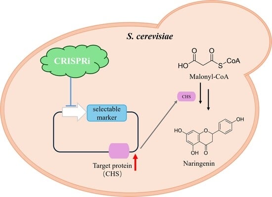 Plasmid copy number (PCN) is a key factor limiting the expression level of heterologous proteins in yeast. Static strategies for enhancing PCN, such as reducing the transcriptional intensity of selection markers or increasing selection pressure, only maintain PCN at a single fixed level and struggle to achieve dynamic, precise, and reversible copy number regulation. This study established a dynamic plasmid copy number regulation strategy based on CRISPR interference (CRISPRi). Flexible control of PCN was achieved by designing specific guide RNAs (gRNAs) and integrating them into the inducible CRISPRi system. Optimization of the gRNA target site, inducer concentration, and induction timing resulted in a >2-fold increase in the fluorescence intensity of yeast-enhanced green fluorescent protein (yeGFP) compared with the group without induction. Using naringenin synthesis as proof-of-concept, this regulatory tool was applied to modulate the expression of chalcone synthase (CHS), the rate-limiting enzyme in naringenin biosynthesis. Finally, the yield of naringenin increased by 35.62% under the optimal induction conditions.