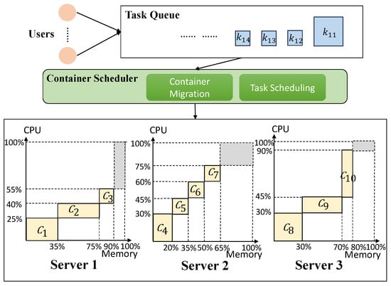 Container-based virtualization has become pivotal in cloud computing, and resource fragmentation is inevitable due to the frequency of container deployment/termination and the heterogeneous nature of IoT tasks. In queuing cloud systems, resource defragmentation and task scheduling are interdependent yet rarely co-optimized in existing