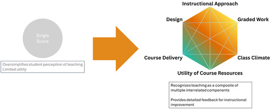 Higher education institutions commonly employ student evaluation of teaching (SET) instruments (e.g., course evaluation surveys) to enhance course quality and inform instructional strategies. However, conceptualizing and measuring SET as a unidimensional construct may compromise validity, particularly when represented by a single aggregated score.