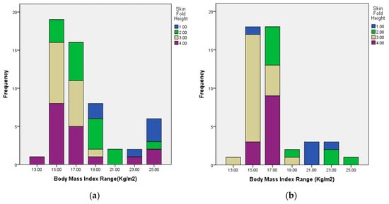 Background/Objectives: Epiblepharon is a common congenital eyelid anomaly in East Asian children, often associated with redundant skin and orbicularis oculi muscle overriding the eyelid margin. Recent studies have suggested that systemic factors such as body mass index (BMI) may contribute to its development. This study aimed to investigate the relationship between BMI and epiblepharon and to analyze the correlation between BMI and skin-fold height as a marker of eyelid structural redundancy. Methods: This retrospective comparative study included 100 pediatric patients (54 males, 46 females) aged 3–13 years who underwent surgical correction for lower eyelid epiblepharon and 100 age-matched controls without the condition. Preoperative height, weight, and skin-fold height were analyzed. Intergroup comparisons were performed using independent t-tests, and correlations between BMI and skin-fold height were evaluated using Spearman correlation. Results: There were no significant differences in overall BMI, obesity index, or prevalence of obesity defined as BMI ≥ 95th percentile between groups. Boys aged 7–8 years demonstrated significantly higher BMI in the epiblepharon group, and boys aged 9–10 years showed a significantly higher obesity index in the epiblepharon group, whereas boys aged 3–4 years showed significantly lower BMI. No significant differences were observed in girls. BMI was not independently associated with epiblepharon in multivariate logistic regression analysis (OR 1.06, 95% CI 0.96–1.16, p = 0.278). Among patients with epiblepharon, BMI showed a significant negative correlation with skin-fold height (r = −0.410, p < 0.001), suggesting increased orbicularis muscle redundancy in obese children. Conclusions: BMI was not independently associated with the presence of epiblepharon; however, age-specific differences were observed in certain male subgroups. Higher BMI was correlated with lower skin-fold height among affected patients, suggesting that adiposity may influence eyelid morphology in specific developmental stages. Further longitudinal studies are warranted to clarify the age-dependent relationship between obesity and epiblepharon.