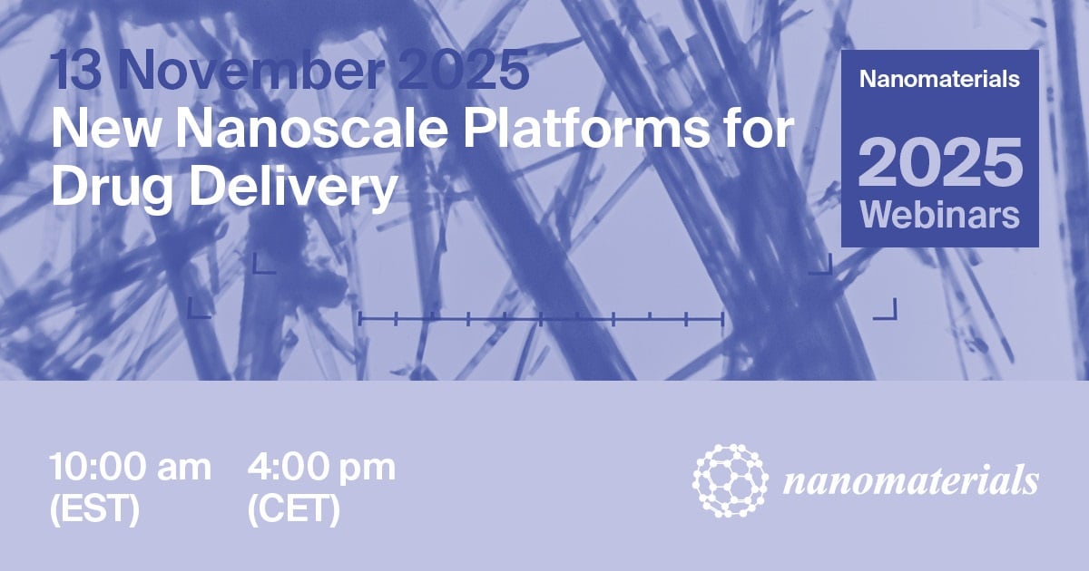 On 13 November 2025, MDPI and Nanomaterials (ISSN: 2079-4991) will host a webinar titled “New Nanoscale Platforms for Drug Delivery”.
