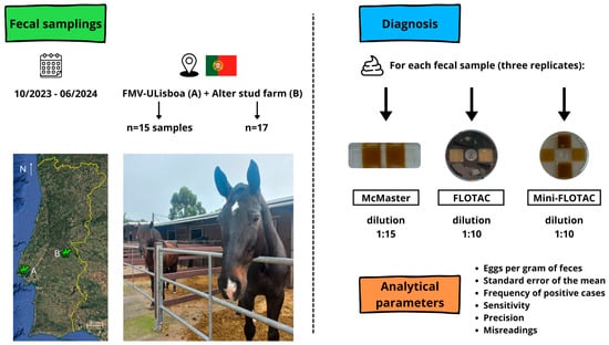 The diagnosis of gastrointestinal (GI) strongyle infections in equids is still mainly performed using quantitative coprological techniques, like the McMaster (McM), but more sensitive and precise techniques, like FLOTAC (FL) and Mini-FLOTAC (MF), have been proposed over the past 20 years. The present