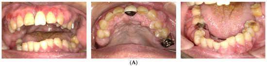 On day 14, the patient’s periodontal condition was seen to have improved following treatment, and the gingival necrosis, redness, and pain resolved (Figure 3). The halitosis had also reduced. After periodontal treatment, six teeth had a poor prognosis (#4, #9, #26, #30, #31, and #32). These teeth had severe mobility and dental caries. We discussed the issues with the patient, and extraction of these problematic teeth was planned considering the patient’s overall well-being and situation, including the general condition, previous and present medical history, medication, paralysis, nursing care system, and the patient’s needs.