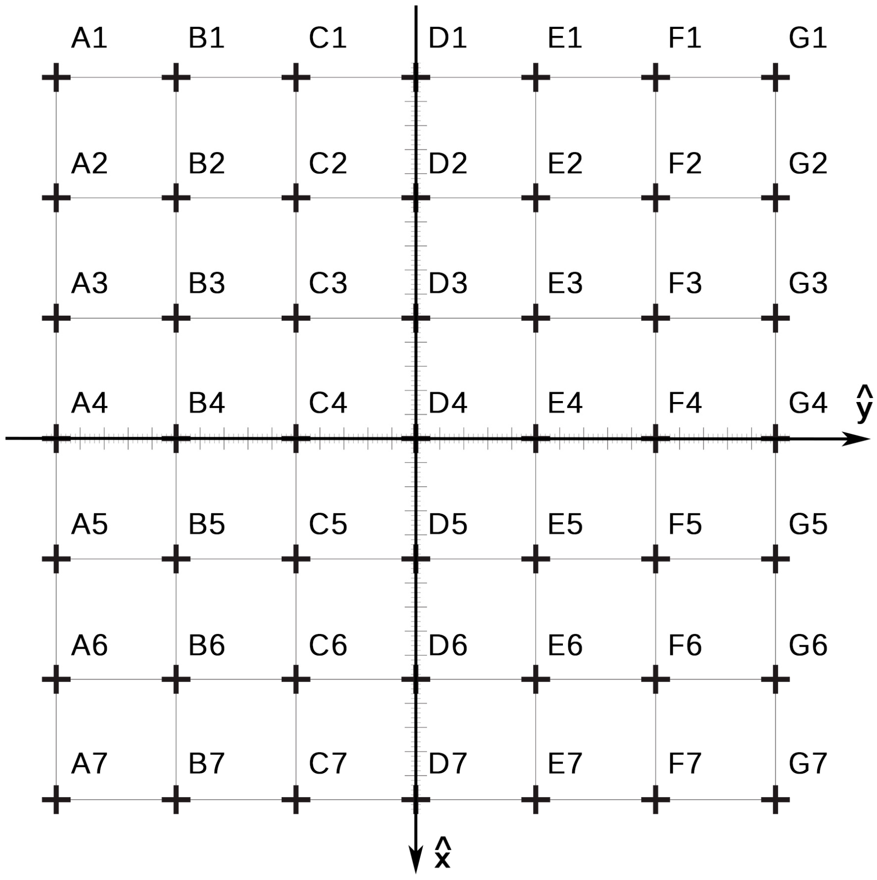 Measurement grid. A 6 × 6 grid with 25 cm × 25 cm squares covering an area of 1.5 m2 was used to measure the estimated position of the right ankle joint.