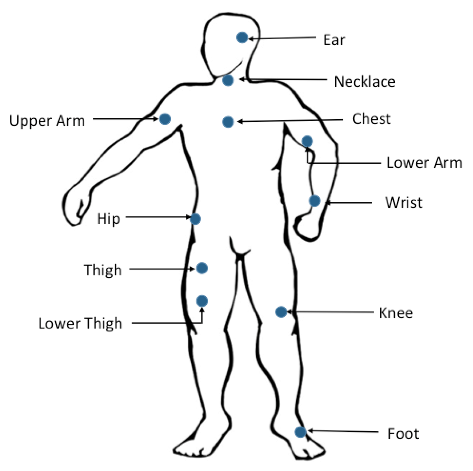Graphical illustration of wearable sensor placement.
