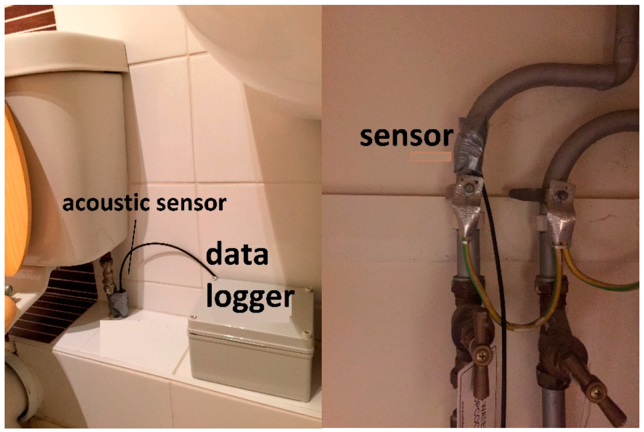 - Froehlich, J.; Larson, E.; Saba, E.; Campbell, T.; Atlas, L.; Fogarty, J.; Patel, S. A longitudinal study of pressure sensing to infer real-world water usage events in the home. In Proceedings of the Pervasive 2011, San Francisco, CA, USA, 12–15 June 2011.