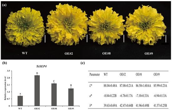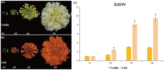 Chlorophyll and carotenoid biosynthesis are essential metabolic processes in horticultural plants, critically influencing the coloration and economic value of fruits and petals. However, the regulatory mechanisms that coordinate the accumulation of both chlorophyll and carotenoids are still poorly understood. In this study, we demonstrated that the transcription factor TeSEP4 modulated petal color in marigolds by simultaneously modulating chlorophyll and carotenoid metabolic pathways. Overexpression of TeSEP4 produced dark-yellow petals, which were associated with enhanced carotenoid biosynthesis and suppression of chlorophyll biosynthesis. In contrast, silencing TeSEP4 triggered a shift toward yellow-green petals by reducing carotenoid accumulation while concurrently increasing chlorophyll content. Transcriptome and qRT-PCR analyses further revealed that TeSEP4 overexpression upregulated key carotenogenic genes such as TePSY1 and TePSY3, while downregulating chlorophyll-related genes, including TeCHLH, TeCHL27-1, and TePORA1. Silencing TeSEP4 expression caused the opposite changes in these genes. These findings reveal a transcriptional factor that coordinates chlorophyll and carotenoid biosynthesis, offering a strategy to simultaneously improve carotenoid content and modify petal color in marigolds.