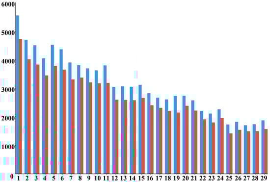 3−-N), available phosphorus (AP), and available potassium (AK) in LA were 11.4%, 8.4%, and 9.3% higher than in MA, and 16.7%, 11.5%, and 15.0% higher than in SA, respectively. Significant differences were observed between LA and SA. This is because the light treatment facilitates the release of available nutrients in the soil, while the moderate and severe treatments hinder this process. Although panicle number per unit area and grain number per panicle in LA were 7.5% and 2.3% higher than in MA, and 10.8% and 2.2% higher than in SA, these differences were not statistically significant. Seed setting rate and thousand-grain weight showed little variation across irrigation treatments. The yield of LA was 10,233.3 kg hm