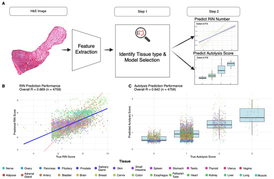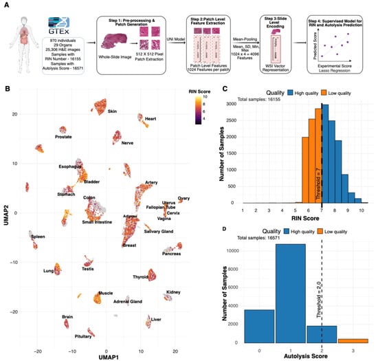 Quantifying tissue, molecular, and structural integrity is essential for biobank development. However, current assessment methods either involve destructive testing that depletes valuable biospecimens or rely on manual evaluations, which are not scalable and lead to interindividual variation. To overcome these challenges, we present PathQC, a deep-learning framework that directly predicts the tissue RNA Integrity Number (RIN) and the extent of autolysis from hematoxylin and eosin (H & E)-stained whole-slide images of normal tissue biopsies. Advancing over prior QC methods focused on imaging quality control, PathQC provides sample-quality control through the direct quantification of molecular integrity (RIN) and structural degradation (autolysis). PathQC first extracts morphological features from the slide using a recently developed digital pathology foundation model (UNI), followed by a supervised model that learns to predict RNA Integrity Number and autolysis scores from these morphological features. PathQC is trained on and applied to the Genotype-Tissue Expression (GTEx) cohort, which comprises 25,306 non-diseased post-mortem samples across 29 tissues from 970 donors, when paired ground-truth RIN and autolysis scores were available. Here, PathQC predicted RIN with an average Pearson correlation of 0.47 and an autolysis score of 0.45, with notably high performance using adrenal gland tissue (R = 0.82) for RIN and colon tissue (R = 0.83) for autolysis. We provide a pan-tissue model for predicting RIN and autolysis scores for new slides from any tissue type (GitHub). Overall, PathQC enables a scalable assessment of tissue molecular and structural integrity from routine H & E images, enhancing biobank quality control and retrospective analyses across 29 tissues and multiple collection sites.