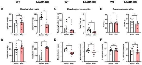 Recent studies indicated a connection between trace amine-associated receptor 5 (TAAR5) and emotional behaviors related to anxiety and depression; however, the neurobiological basis of this link is still unclear. Using mutant TAAR5 knockout (TAAR5-KO) mice, we explored the consequences of receptor deletion on