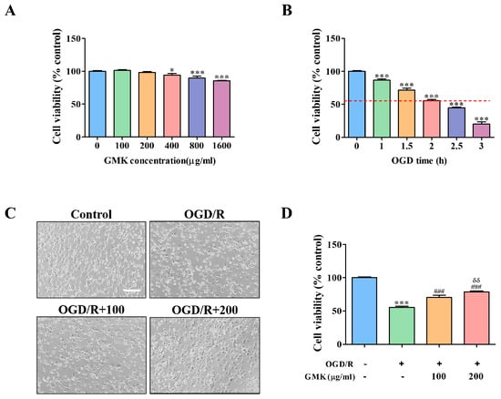 Background: GMK is a bioactive material newly identified from a water extract of mixed mushroom mycelia (Phellinus linteus, Inonotus obliquus, and Ganoderma lucidum). It has shown protective effects against glutamate-induced excitotoxicity and lipopolysaccharide-triggered neuroinflammation. However, whether GMK can ameliorate