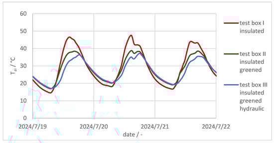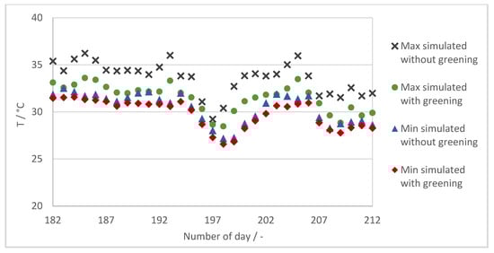 Cooling Effects of Roof Greenings at Residential Buildings—Consideration of a Hydraulic Connection to the Interior