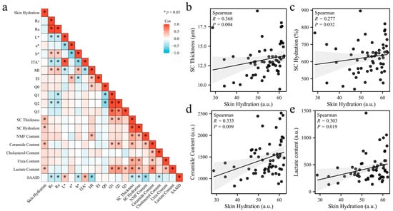 Skin hydration is a key indicator of skin health and stratum corneum (SC) integrity, yet its relationship with multi-dimensional physiological parameters remains incompletely understood. This study aimed to investigate the association between facial skin hydration and key physiological parameters and explored the lipidomic
