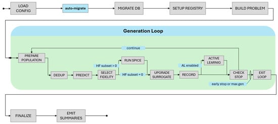 This work presents a unified framework for multiobjective analog circuit optimization that combines surrogate modeling, uncertainty-aware evolutionary search, and adaptive high-fidelity verification. The approach integrates ensemble regressors and graph-based surrogate models with a closed-loop multi-fidelity controller that selectively invokes SPICE evaluations based on