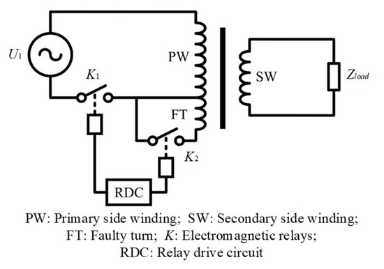 Inter-turn short-circuit faults in power transformers generate enormous short-circuit currents within the affected turns, making full-scale experimental investigations impractical. To address this issue, this study proposes an experimental method utilizing a third external short-circuit winding to simulate inter-turn faults through structural improvements in winding configuration and conductor current-carrying capacity. A simulation calculation model for transformer inter-turn short circuits was first established to investigate the equivalence between the proposed equivalent fault model and actual fault conditions under varying short-circuit positions and proportions. Simulation results demonstrate that both models exhibit consistent primary/secondary winding currents, short-circuit turn currents, and spatial radial leakage magnetic field distributions post-fault, with average errors less than 5%. Subsequently, an experimental platform for inter-turn short-circuit fault simulation was constructed. Current and leakage magnetic field measurements under different fault positions and proportions were validated against simulation data, confirming the proposed method’s equivalence. This approach provides an effective pathway for investigating fault characteristics and monitoring methodologies of transformer inter-turn short circuits.