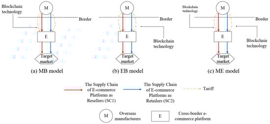 Based on the perspective of multi-stage dynamic competition, this study constructs a discrete dynamic model of price competition between the “direct sales” and “resale” channels in cross-border e-commerce (CBEC) under three blockchain deployment modes. Drawing on nonlinear dynamics theory, the Nash equilibrium of the system and its stability conditions are examined. Using numerical simulations, the effects of factors such as the channel price adjustment speed, tariff rate, and commission ratio on the dynamic evolution, entropy, and stability of the system under the empowerment of blockchain technology are investigated. Furthermore, the impact of noise factors on system stability and the corresponding chaos control strategies are further analyzed. This study finds that a single-channel deployment tends to induce asymmetric system responses, whereas dual-channel collaborative deployment helps enhance strategic coordination. An increase in price adjustment speed, tariffs, and commission rates can drive the system’s pricing dynamics from a stable state into chaos, thereby raising its entropy, while the adoption of blockchain technology tends to weaken dynamic stability. Therefore, after deploying blockchain technology, each channel should make its pricing decisions more cautiously. Moderate noise can exert a stabilizing effect, whereas excessive disturbances may cause the system to diverge. Hence, enterprises should carefully assess the magnitude of disturbances and capitalize on the positive effects brought about by moderate fluctuations. In addition, the delayed feedback control method can effectively suppress chaotic fluctuations and enhance system stability, demonstrating strong adaptability across different blockchain deployment modes.