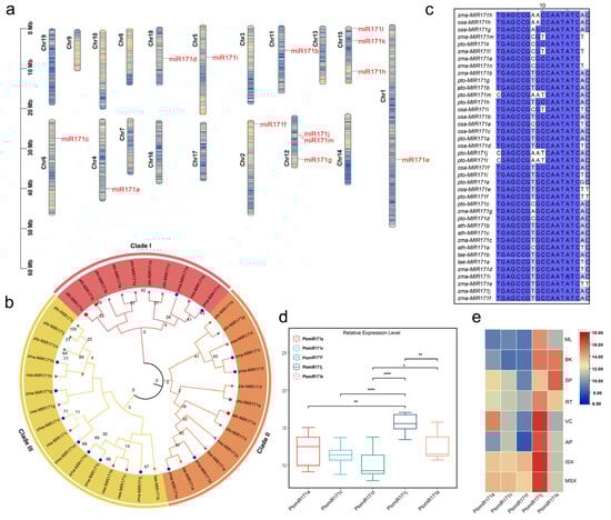 Enhancing wood properties, particularly fiber length (FL), represents a critical objective in Populus tomentosa breeding programs. However, the molecular mechanisms regulating these traits remain largely elusive. Here, an integrative analysis of the PtomiR171 family, uncovering substantial functional divergence among PtomiR171 family members and