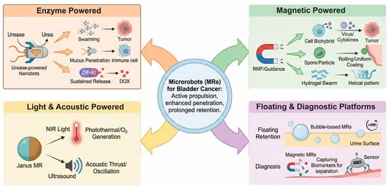 Active propelled micro robots (MRs) represent a transformative shift in biomedical engineering, engineered to navigate physiological environments by converting chemical, acoustic, or magnetic energy into mechanical propulsion. Unlike passive delivery systems limited by diffusion and systemic clearance, MRs offer autonomous mobility, enabling precise penetration and retention in hard-to-reach tissues. This review provides comprehensive analysis of MR technologies within urology, a field uniquely suited for microrobotic intervention due to the urinary tract’s anatomical accessibility and fluid-filled nature. We explore how MRs address critical therapeutic limitations, including the high recurrence of kidney stones and the rapid washout of intravesical bladder cancer therapies. The review categorizes propulsion mechanisms optimized for the urinary environment, such as urea-fueled nanomotors and magnetic swarms. Furthermore, we detail emerging applications, including bioresorbable acoustic robots for tumor ablation and magnetic grippers for minimally invasive biopsies. Finally, we critically assess the path toward clinical translation, focusing on challenges in biocompatibility, real-time tracking (MRI, MPI, photoacoustic imaging), and the regulatory landscape for these advanced combination products.