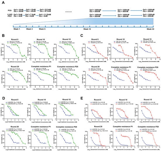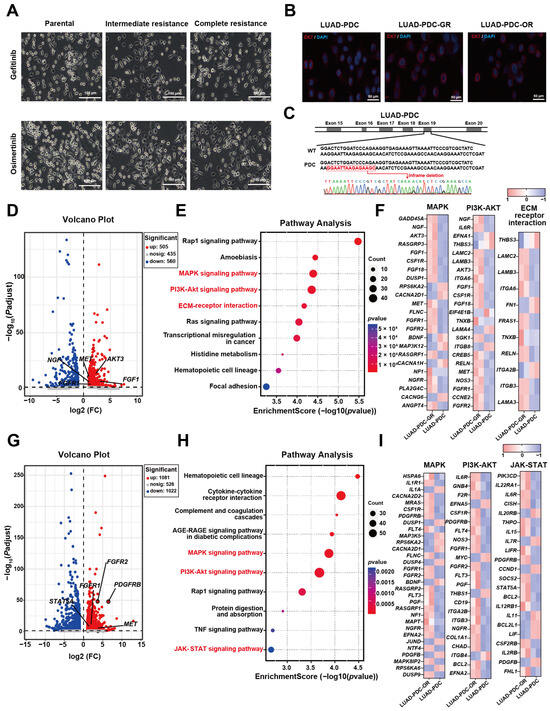 Background/Objectives: Acquired resistance to epidermal growth factor receptor (EGFR)-tyrosine kinase inhibitors (TKIs) remains a major challenge in the treatment of EGFR-mutant lung adenocarcinoma (LUAD). This study aimed to develop and characterize representative models of acquired EGFR-TKI resistance and to identify potential therapeutic