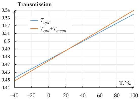 This treatise studies the thermal sensitivity of the mechanical and optical transmission coefficients of a microoptoelectromechanical (MOEM) accelerometer based on evanescent coupling in a temperature range from minus 40 to plus 125 °C. Two types of optical measuring transducers are considered: based on