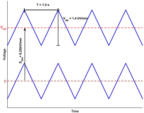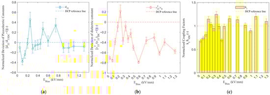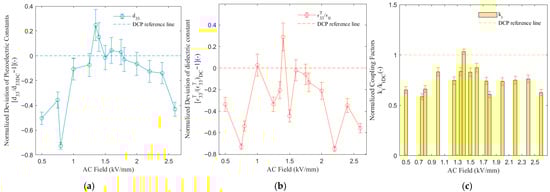 Alternating-current poling (ACP) is becoming a mainstream method because of its stronger ability in promoting the piezoelectric performance of ferroelectric single crystals than that of direct-current poling (DCP). A novel approach was developed by incorporating alternating-current poling and direct-current poling as modified alternating-current poling (MACP). According to the comparison of performance differences between AC-poled and DC-poled single crystals, the properties of MACP single crystals under specific conditions were systematically investigated. The improvement of single crystal performance by MACP is manifested by the multi-peak increase in piezoelectric coefficient () and relative dielectric permittivity (), and the coupling factor () value under higher DC bias is higher than that under DC polarization, rather than a direct superposition of DCP and ACP. Two optimal polarization windows were found: 0.2–0.25 kV/mm and 0.35–0.6 kV/mm. Compared with DCP, MACP increases the , and , of single crystals by up to 45.67%, 21.62%, and 24.54%, respectively. This significant performance improvement, combined with its complexity, provides a new direction for customizing the performance of single crystals.