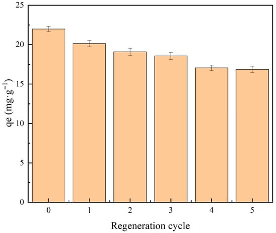 A phosphogypsum flotation tailings-derived zeolite (PGTZ) was synthesized from the tailings produced during the reverse flotation of phosphogypsum through alkaline fusion and hydrothermal treatment. The response surface methodology (RSM) utilizing a three-level Box–Behnken design (BBD) was used to assess the adsorption of MB by PGTZ. Polynomial regression models were developed to analyze the effects of process parameters on adsorption capacity (qe). The maximum MB adsorption occurred under the following optimized conditions: PGTZ dosage = 5.31 g·L−1; initial MB concentration = 294.59 mg·L−1; pH = 7.42; and adsorption time = 187.89 min. Additionally, adsorption isotherm and kinetic models were fitted to the experimental data to determine model parameters. The Langmuir isotherm model and pseudo-second-order kinetic model incorporating intraparticle diffusion were able to effectively predict MB adsorption onto PGTZ. Thermodynamic analyses indicated that the adsorption process was spontaneous, with strong chemical interactions between MB and PGTZ.