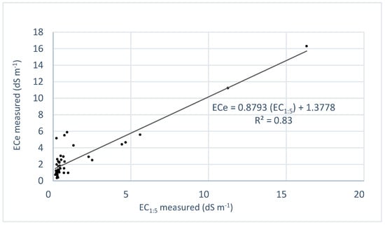 Soil electrical conductivity is a key indicator of soil salinity and sustainability, particularly in arid and semi-arid regions. Accurate estimation of EC is essential for managing soil salinity and ensuring crop productivity. Five pedotransfer functions (PTFs) were developed and evaluated for predicting electrical conductivity in a saturated paste extract using soil parameters, such as particle size analysis, pH, organic carbon, total nitrogen, cation exchange capacity, and electrical conductivity in a 1:5 soil-to-water extract, in agricultural soils of northern Tunisia. The accuracy of each PTF was systematically evaluated. PTF1 represented an R2 value of 0.85, PTF2 showed an R2 of 0.71 for the stepwise regression model, PTF3 achieved an R2 of 0.84, PTF4, based on Lasso/Ridge regression, reached an R2 of 0.89, and PTF5 reached an R2 of 0.83. Our findings revealed regional variations in soil salinity, with certain areas showing elevated salinity levels that could affect agricultural sustainability. This research emphasizes the importance of developing ad hoc PTFs as a reliable tool for predicting soil salinity and, consequently, assuring sustainable soil management in northeastern Tunisia.