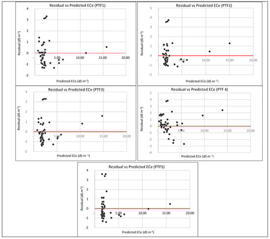 Soil electrical conductivity is a key indicator of soil salinity and sustainability, particularly in arid and semi-arid regions. Accurate estimation of EC is essential for managing soil salinity and ensuring crop productivity. Five pedotransfer functions (PTFs) were developed and evaluated for predicting electrical