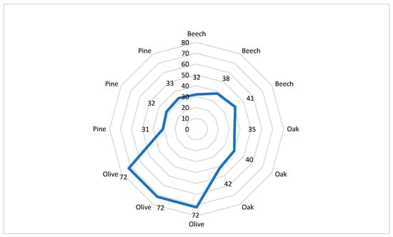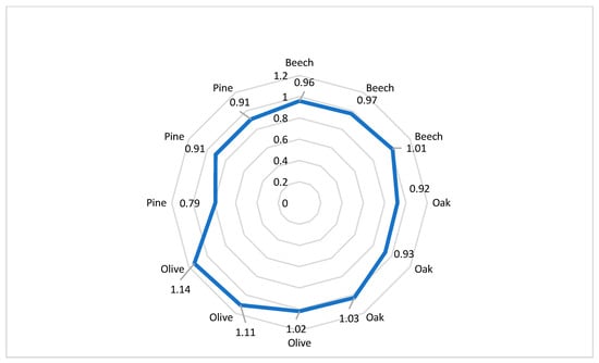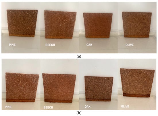 The recycling and reuse of wood have gained importance as strategies for reducing construction waste, lowering costs, and promoting circular practices in the built environment. This study evaluates the performance of recycled wood particle/epoxy composites (WPECs) for façade applications by prototyping panels produced from granulated degraded wood bonded with epoxy resin and coated with intumescent fire-retardant paint. The panels were design to meet standards for ventilated façade applications in accordance with EN 310-93 and ASTM D1037-06a and relevant building codes for facade cladding. Three replicates of each panel type were tested under controlled laboratory conditions to assess water absorption, equilibrium moisture content, capillarity, fire resistance, and mechanical performance. Moisture measurements were performed at immersion and drying intervals of 12, 24, 36, 72, and 120 h for four WPEC types manufactured with pine, beech, oak, and olive fibers. Statistical evaluation using SPSS (one-way and two-way ANOVA) confirmed significant species effects across most parameters. Results indicated that olive and oak WPECs provided the highest dimensional stability under moisture exposure, with olive additionally demonstrating superior compressive strength (35.45 MPa) and hardness (˂10,000 N). Pine and beech WPECs exhibited intermediate bending strength (≈10 MPa) and elasticity, while oak contributed stable swelling values despite lower strength. Fire resistance tests suggested relative improvements, although further standardized evaluation is needed. Collectively, olive and oak WPECs emerged as the most promising façade materials, combining durability, mechanical strength, and sustainability.