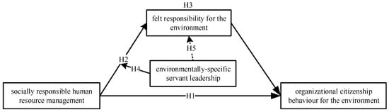 Building on social identity theory (SIT), this study investigates how socially responsible human resource management (SRHRM) shapes employees’ organizational citizenship behavior for the environment (OCBE). The proposed framework suggests that felt responsibility for the environment (FRE) serves as a psychological bridge between SRHRM and OCBE, while environmentally specific servant leadership (ESL) strengthens this linkage. Using three waves of matched data collected from 236 full-time employees across manufacturing, service, and technology firms in China, the study applies hierarchical regression and bootstrapping techniques to test the hypotheses. The results indicate that SRHRM has a significant positive effect on OCBE, and this relationship is partly explained by employees’ FRE. In addition, higher levels of ESL amplify the positive association between SRHRM and FRE and reinforce the overall indirect effect on OCBE, producing a statistically meaningful moderated mediation pattern. These findings add to existing knowledge by clarifying the psychological process through which SRHRM encourages employees’ voluntary pro-environmental actions. The study also underscores the role of leadership in shaping the impact of SRHRM, offering organizations practical directions for nurturing a culture of environmental responsibility.