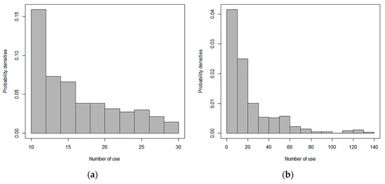 Based on the estimation of model parameters, the expected value of the number of uses in the following month was calculated using Equation (16). The results of parameter estimation are given in Table 2.